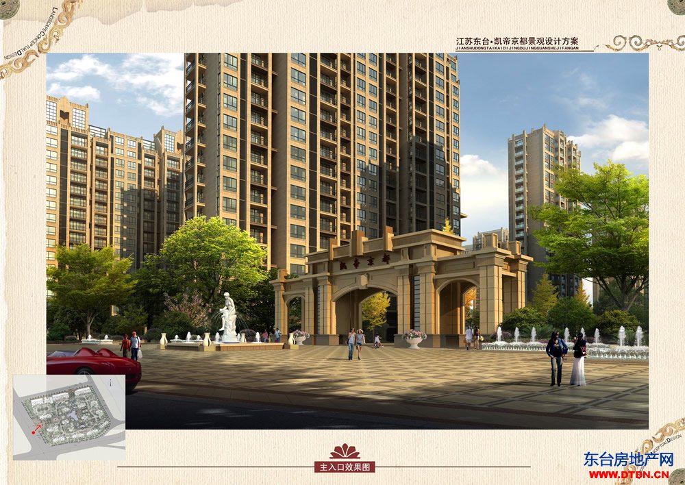 凯帝京都位于东台迎宾馆北侧,地理位置优越,南边1000米就是东台市政府和各局机关,环境优美,楼盘中央有大型湖景,楼盘由东台凯之文置业开发,实力雄厚,价格实惠,最低价3980元每平方米起。有意者垂询: