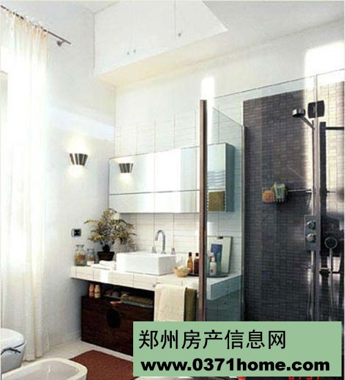 3为了避免卫浴空间显得过于苍白,可以选择具有品质感的深棕色墙砖,再配以同样颜色的地砖,给单一的卫浴空间带来变化。